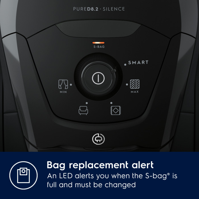 - Indicatorul „S-bag” se aprinde alb când aspiratorul funcționează